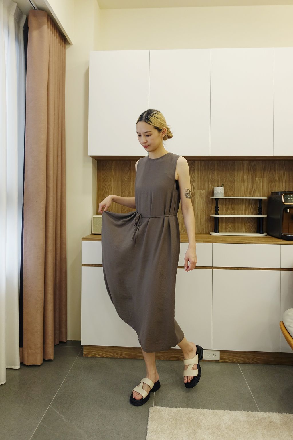 • 附長161.5cm綁帶,可自由調整造型或收腰比例