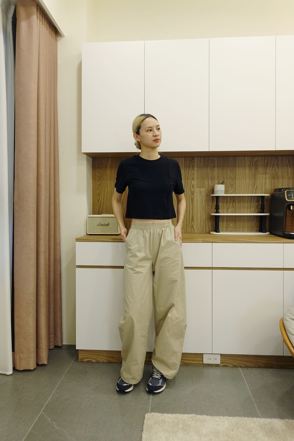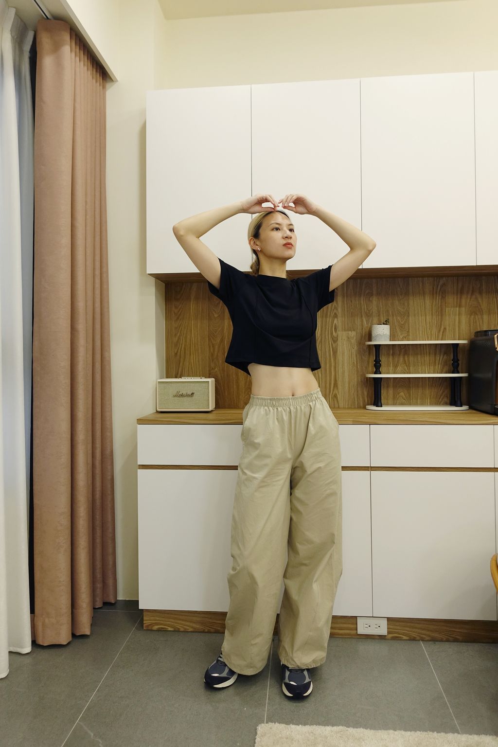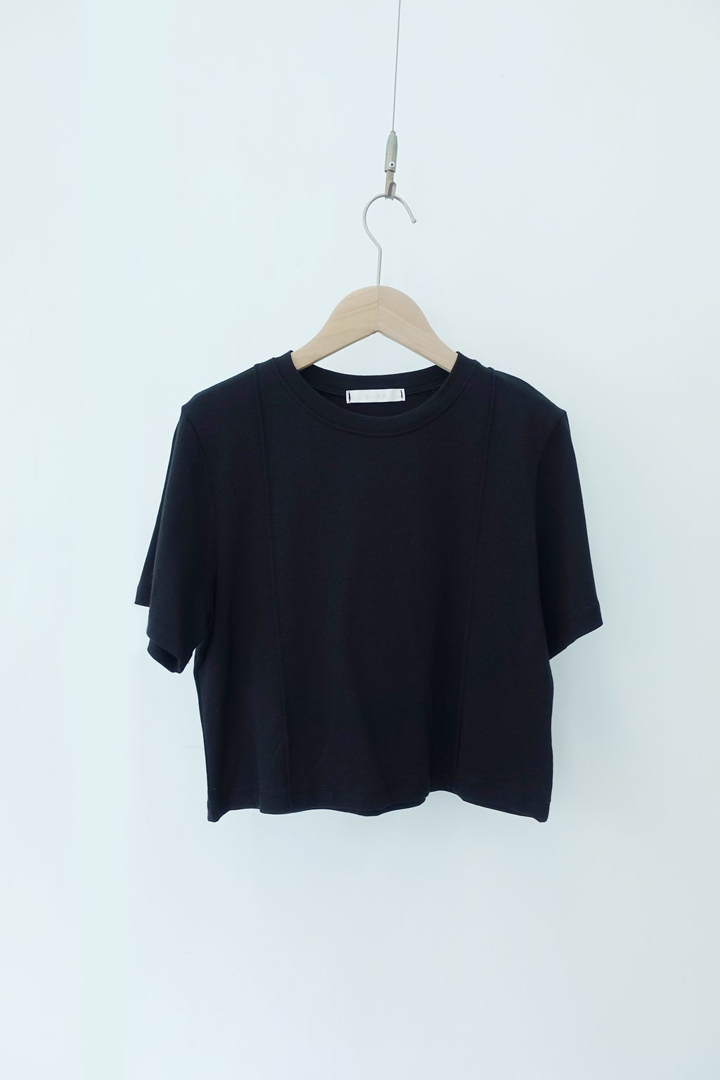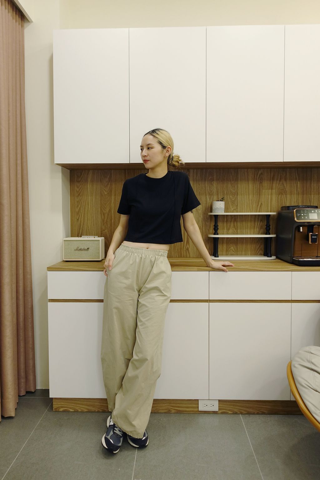 • 正常肩線+短版剪裁,微合身版型不壓胸