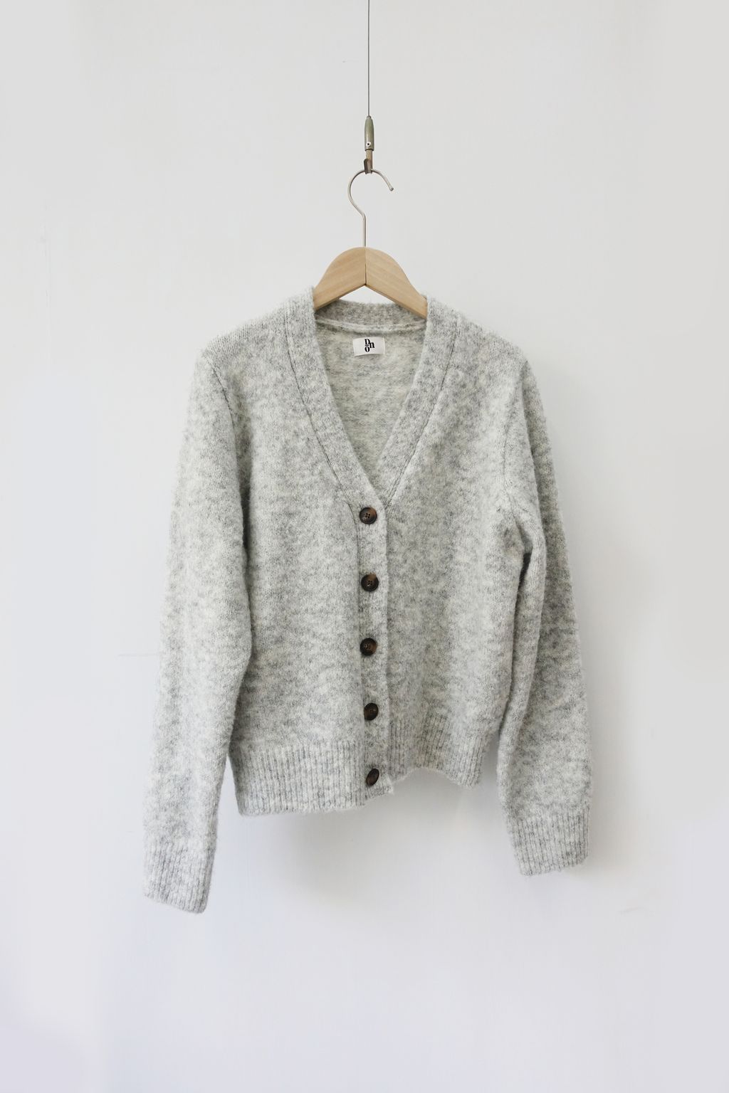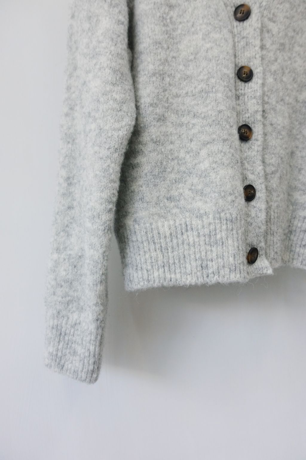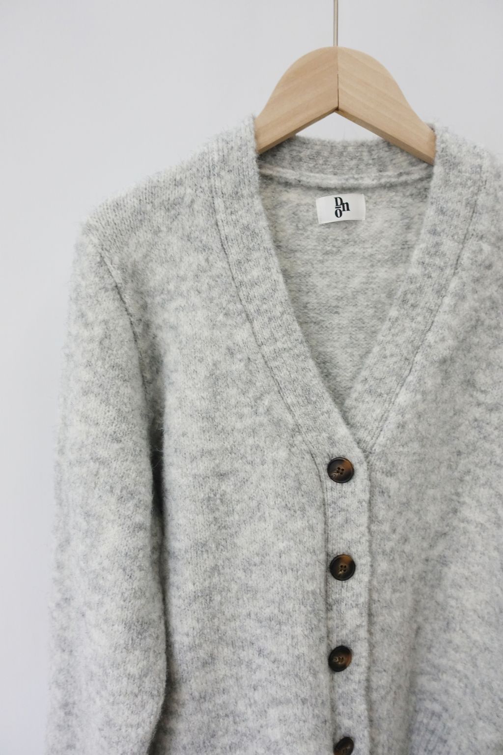 • 正面V型領開襟,搭配撞色咖自然紋理釦