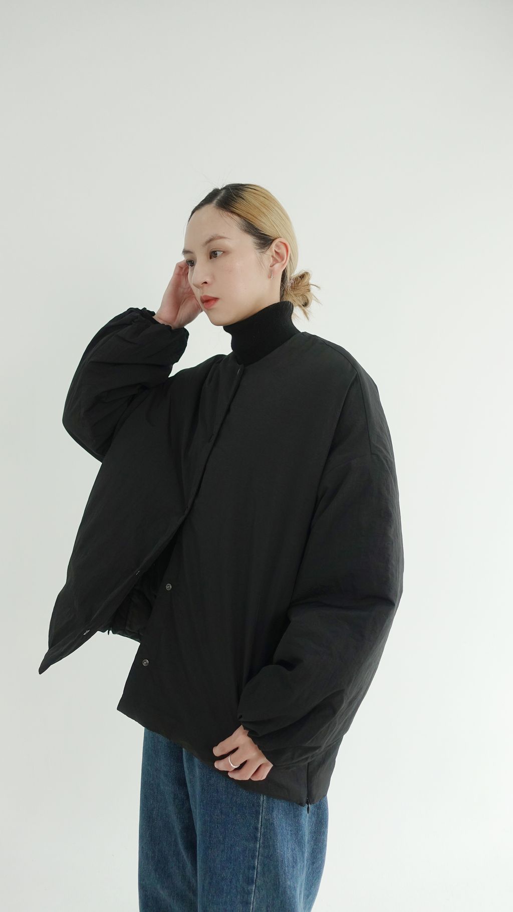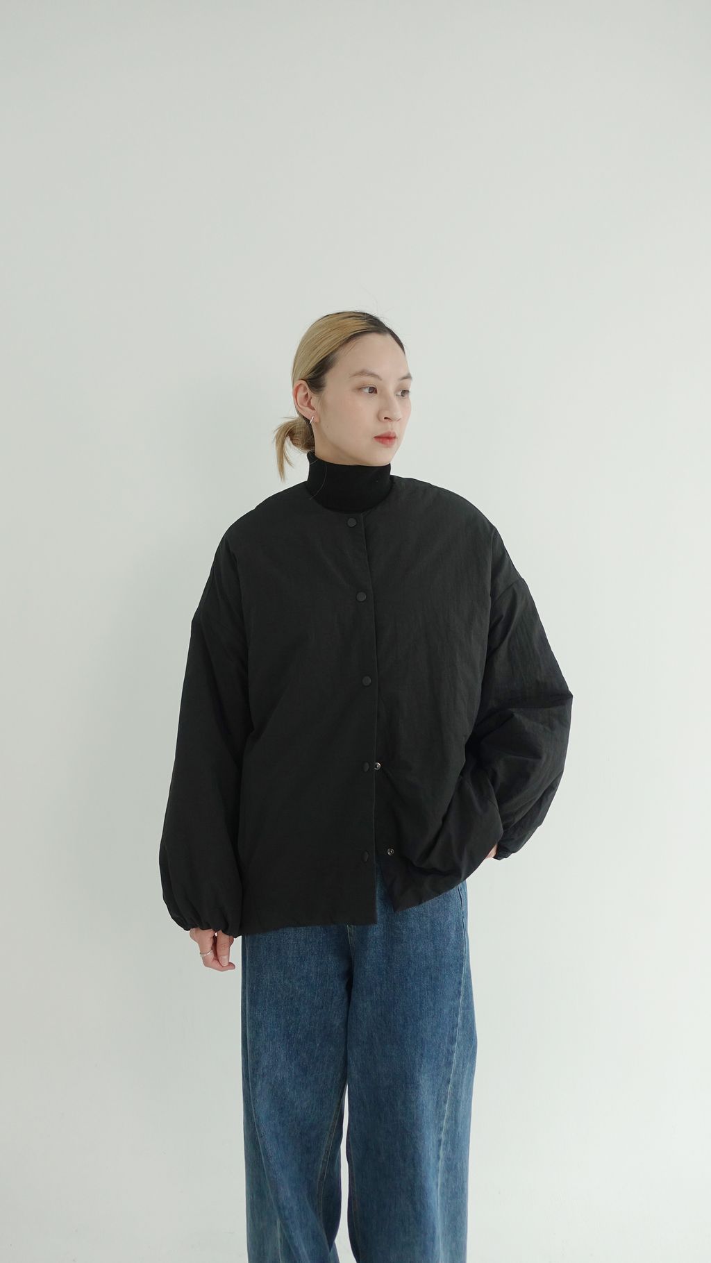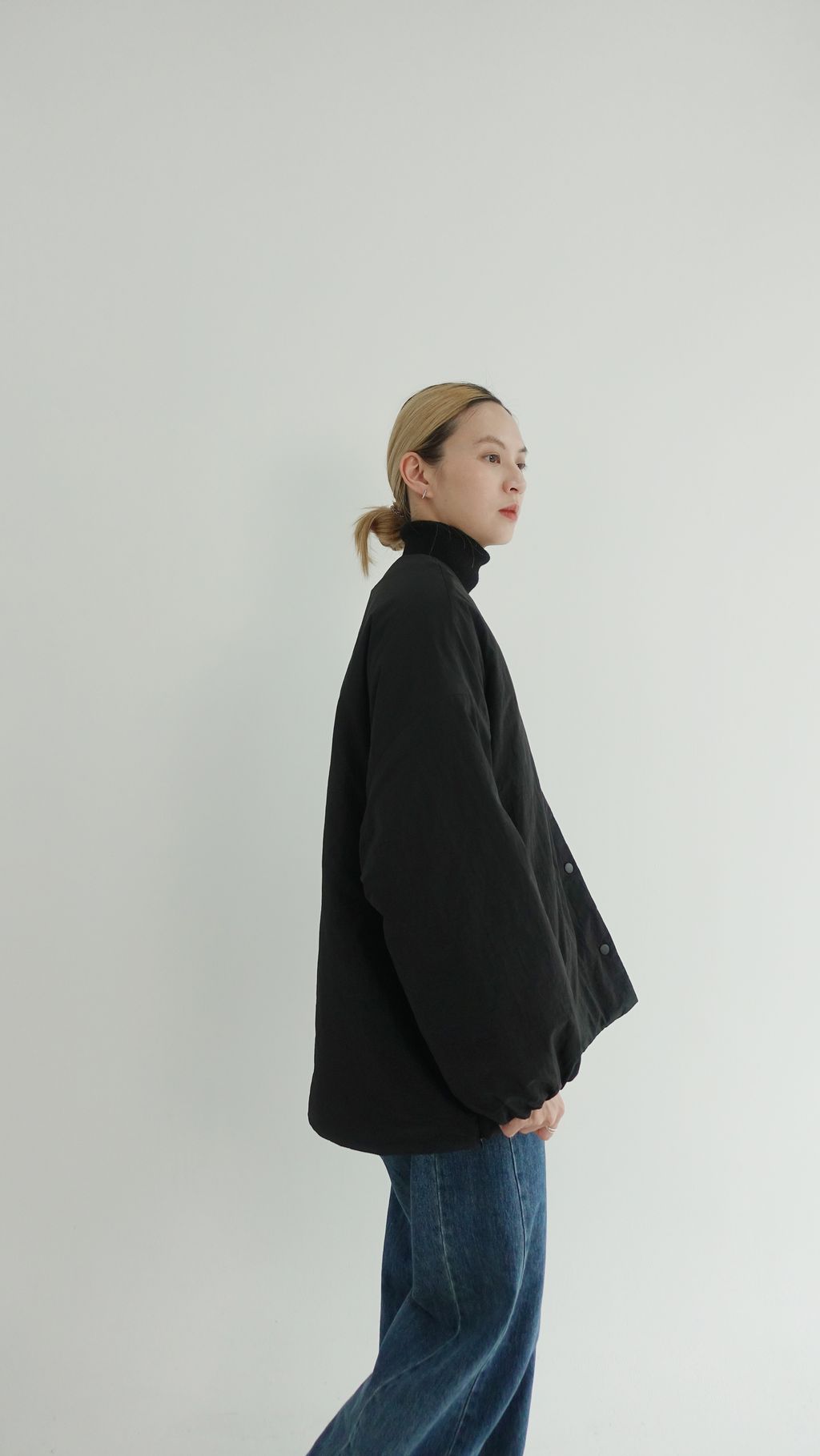 • 日系極簡無領設計,門襟採霧黑四合釦點綴