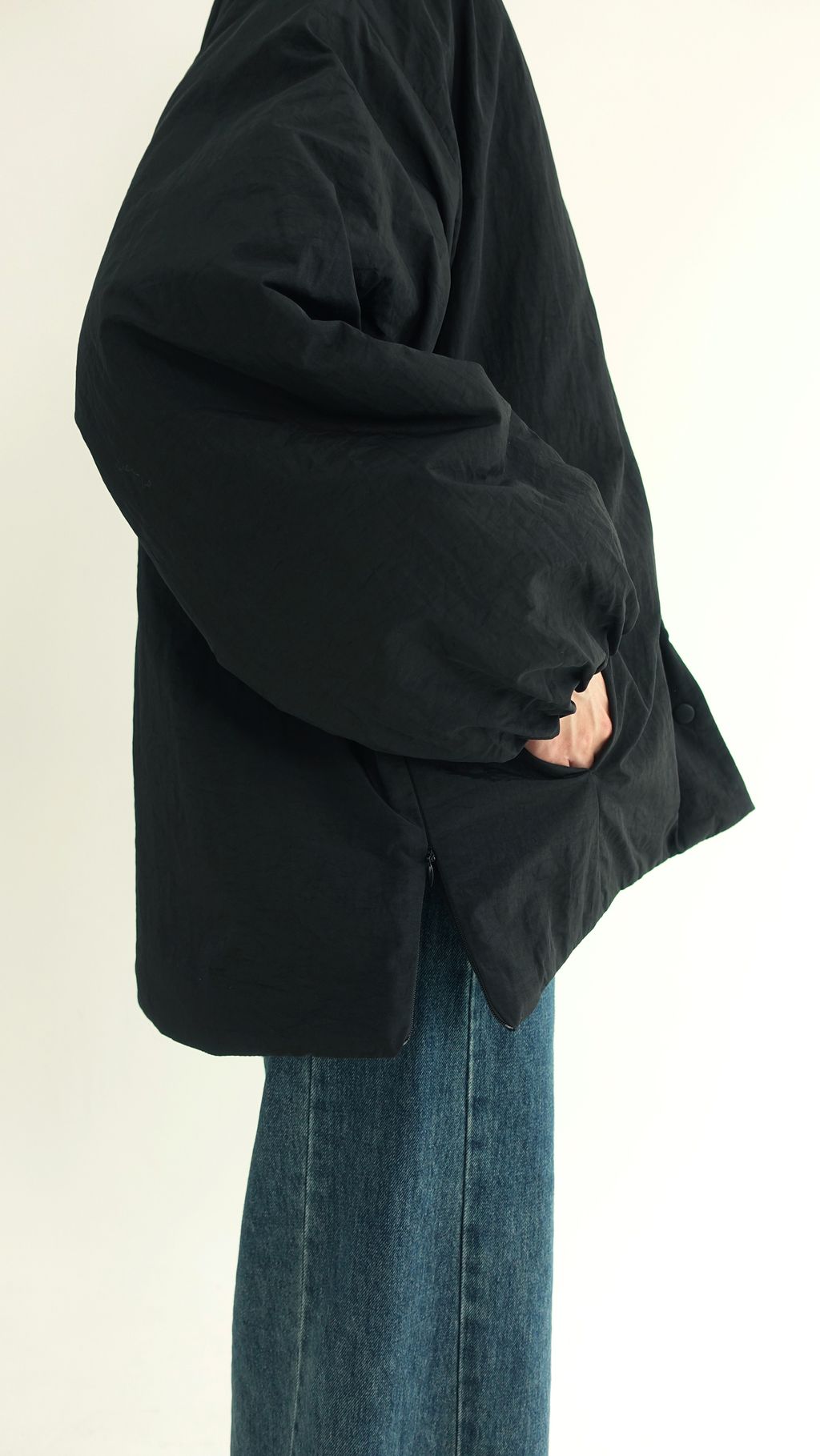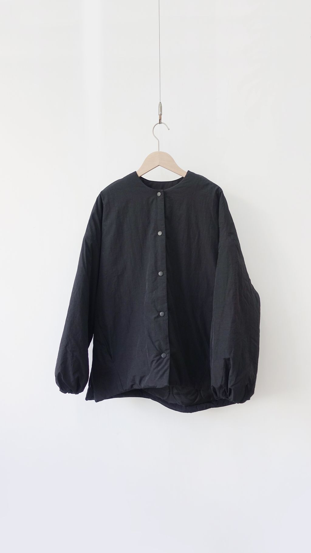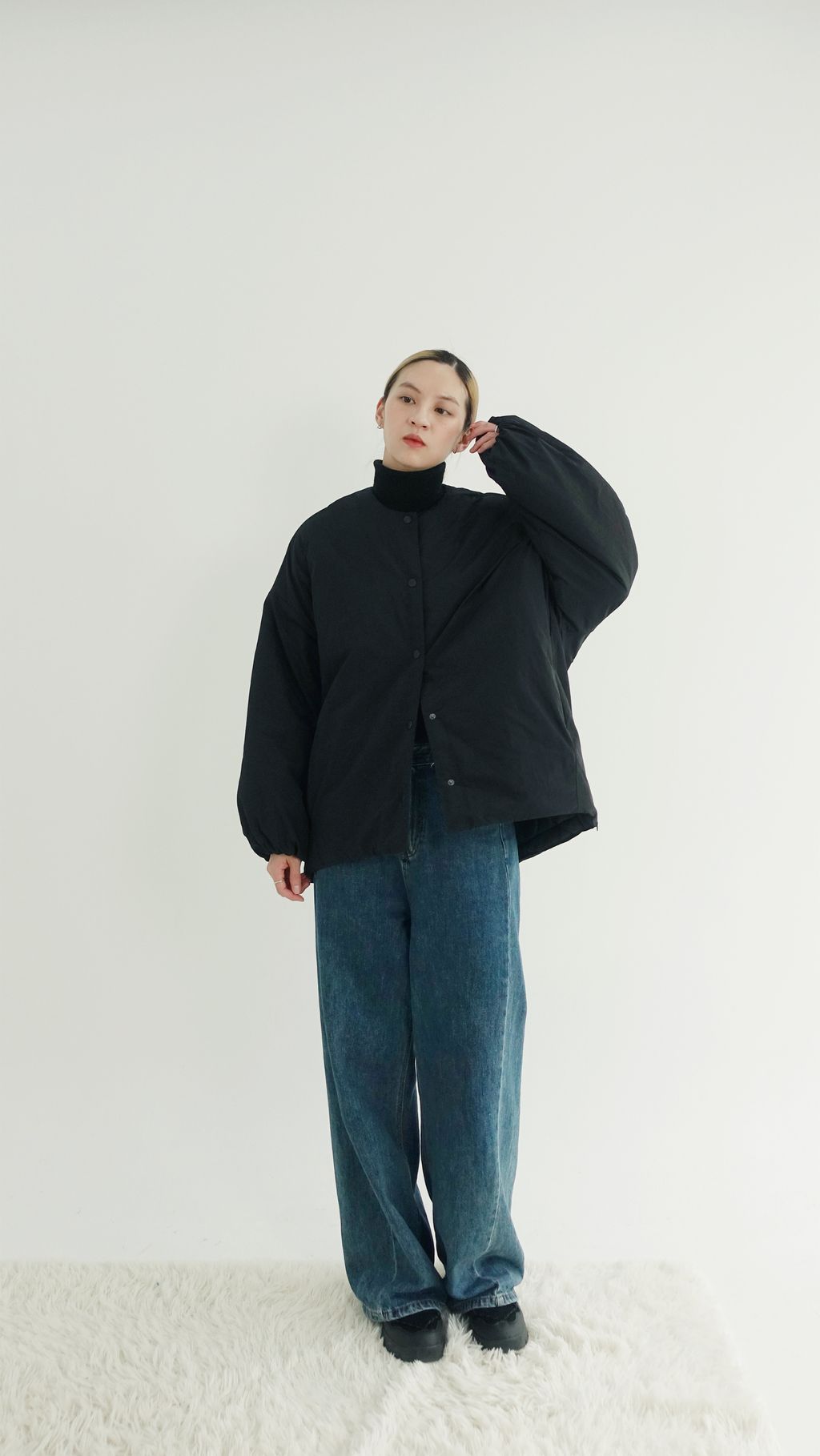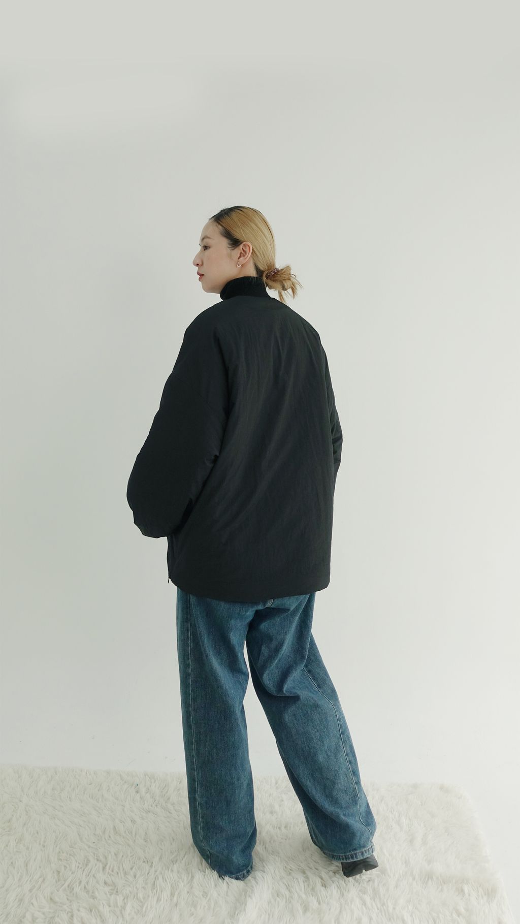 • 日系極簡無領設計,門襟採霧黑四合釦點綴