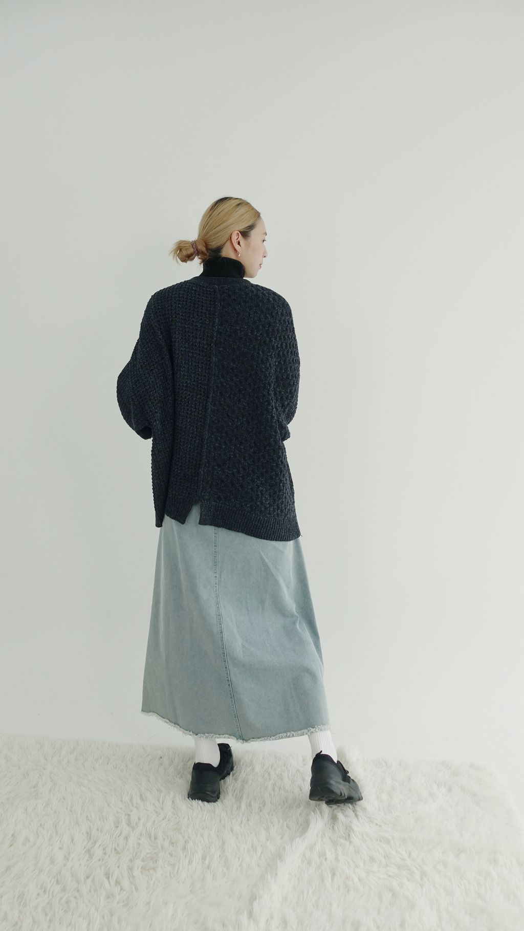 • 微鏤空粗線針織,柔軟Q彈且親膚,穿著有份量卻不顯胖