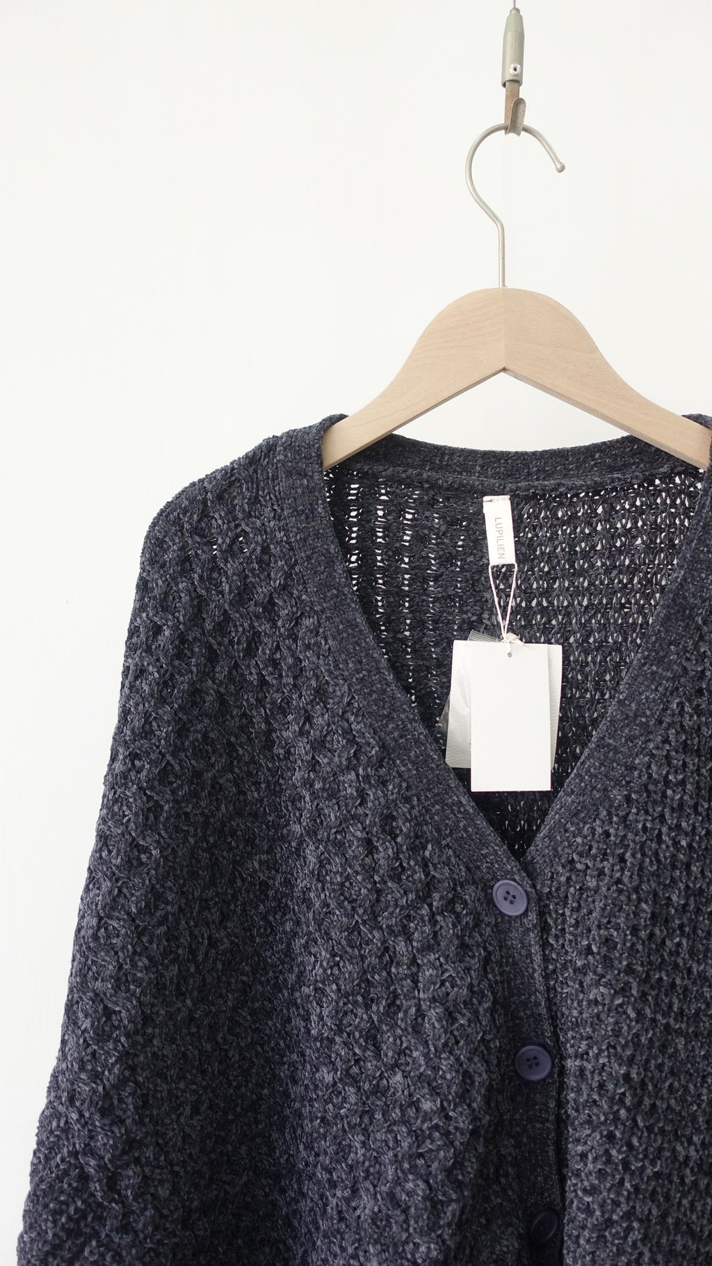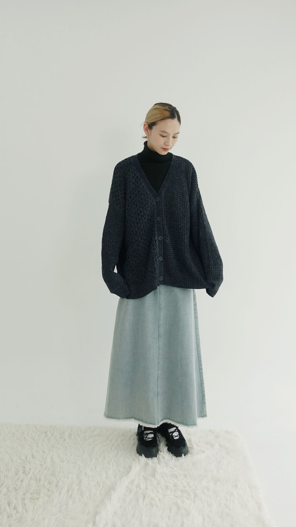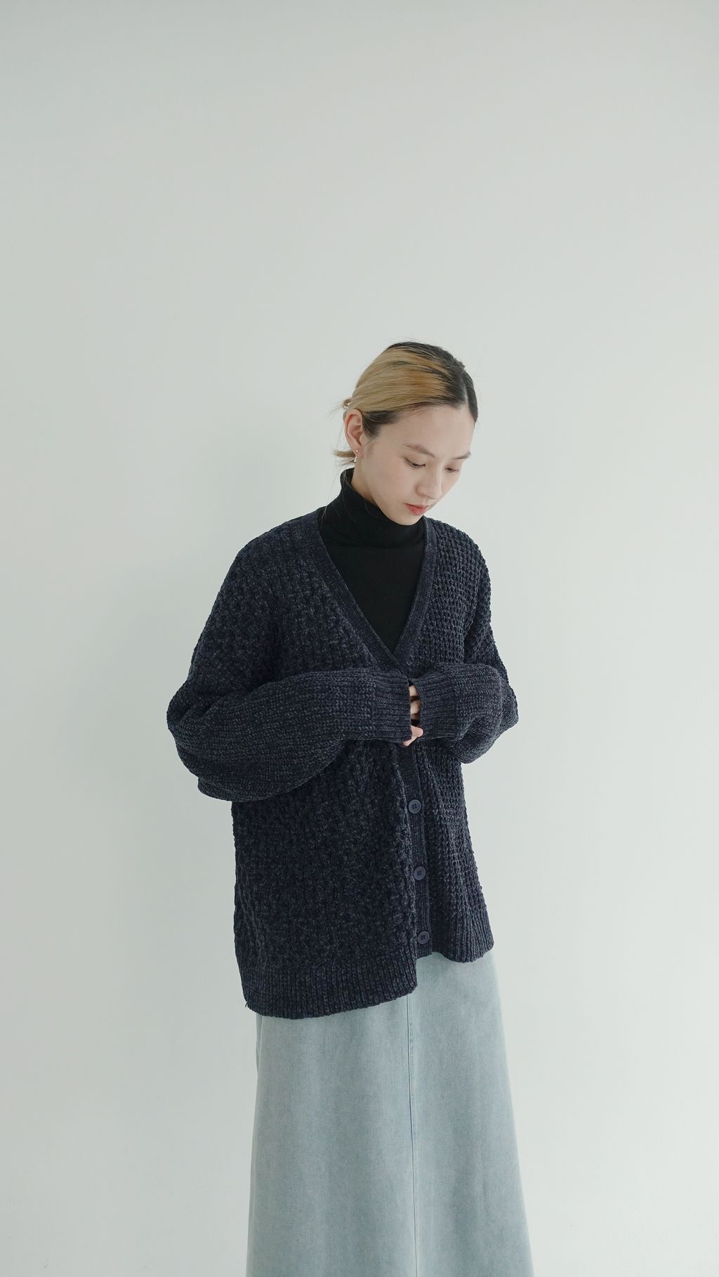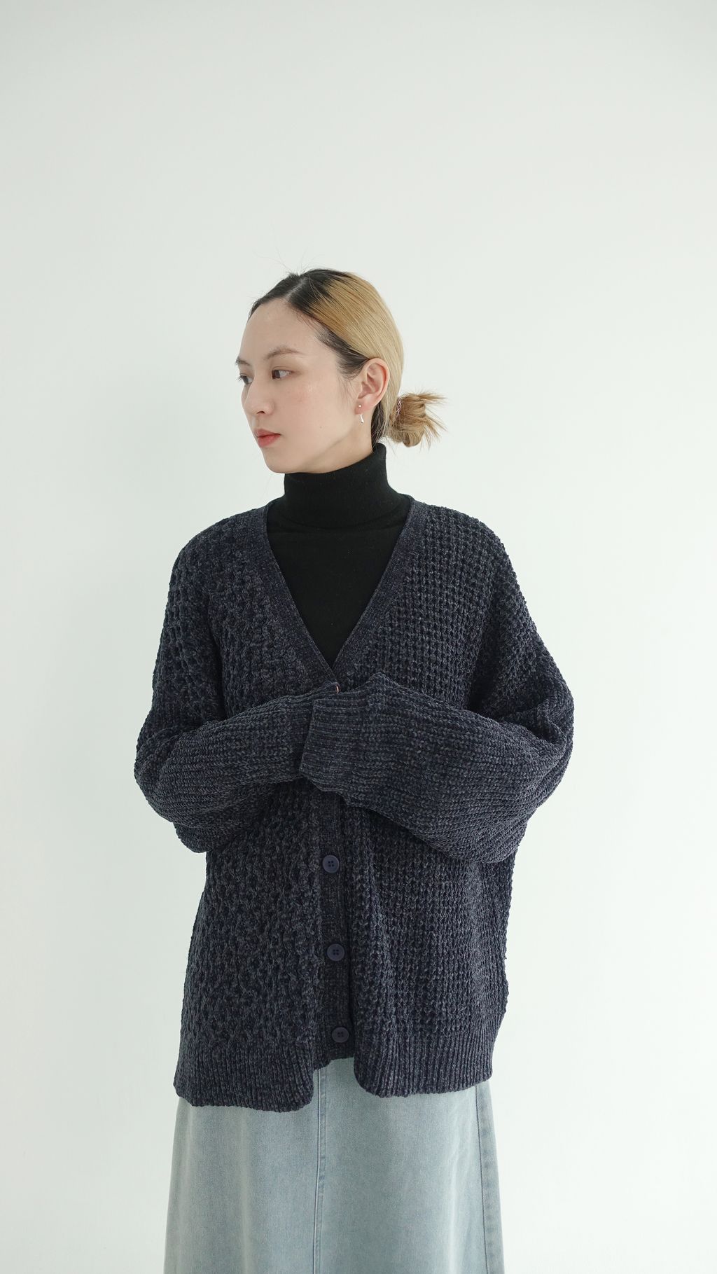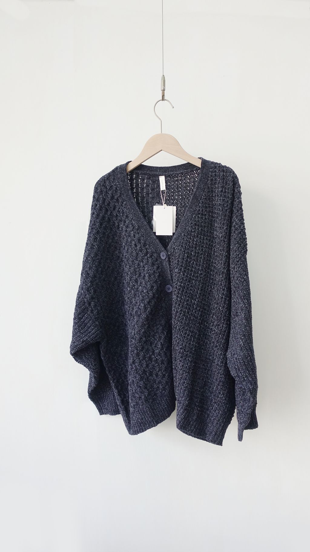 • 整排開釦門襟,左右不同的針織織法拼接,低調有層次感